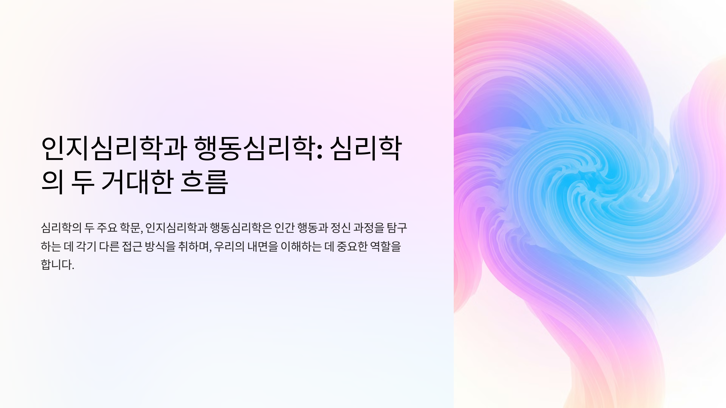 궁극적으로, 인지심리학과 행동심리학은 각각의 강점을 통해 인간 행동의 본질을 더 깊이 탐구하도록 도와줍니다. 여러분은 이 두 학문 중 어떤 분야에 더 흥미를 느끼시나요? 또는 실생활에서 경험한 사례를 공유해 보세요. 여러분의 이야기가 더 풍부한 논의를 만들어 줄 거예요! 😊